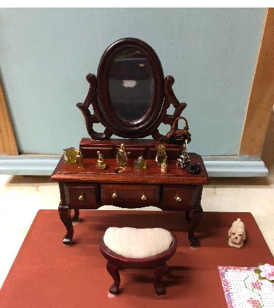 TOCADOR CON ESPEJO OVALADO DE MADERA